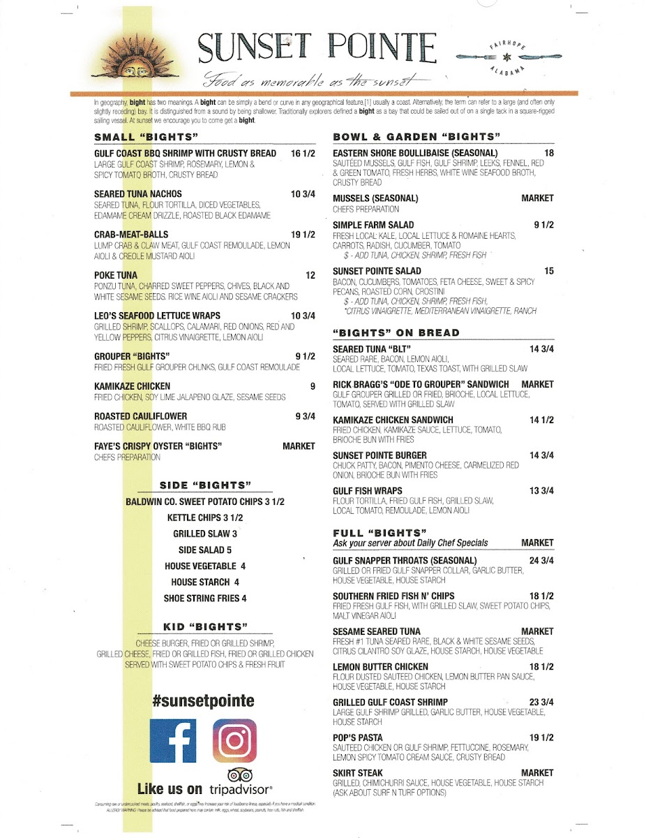 Introducing the Menu at Sunset Pointe at Fly Creek Marina